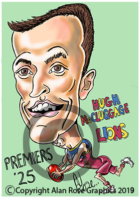 Adam Treloar digital caricature drawn during AFL Dogs v Cats game…
