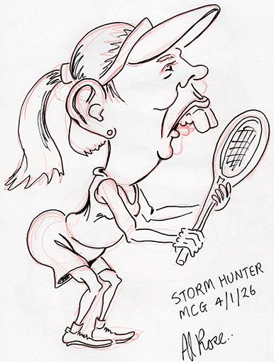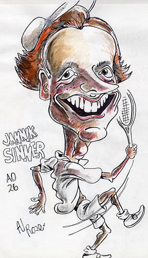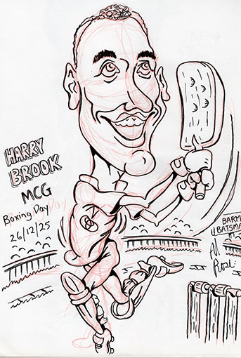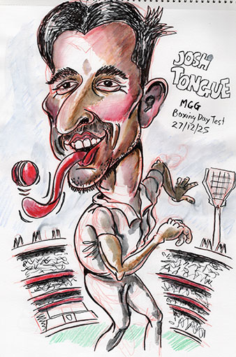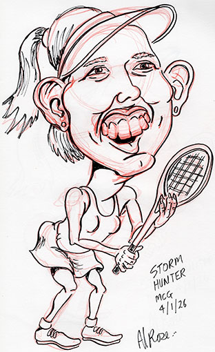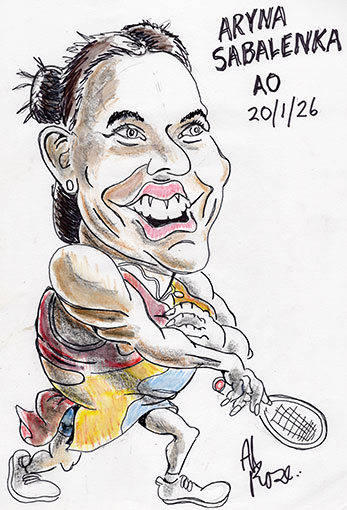 Caricatures drawn at the ’25 Boxing Day Test and the ’26 Aust Open tennis